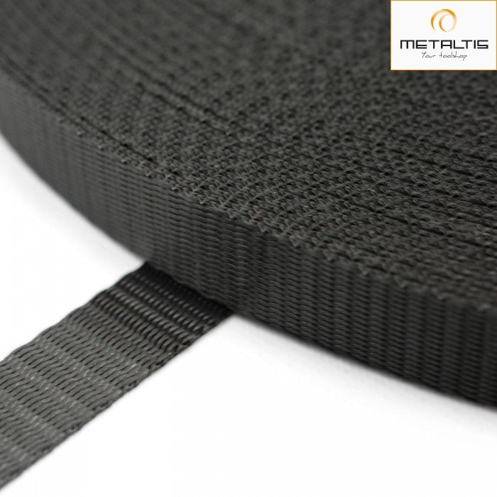 Vente Au mètre Matière : Polypropylène Largeur 50 mm Rouleau longueur 100 ml Couleur : Noir/ Blanc